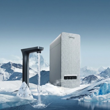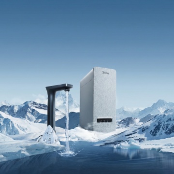 静谧湖畔,现代极简加湿器置于岩石之上,水雾轻扬,倒影清晰,融合自然与科技,呈现清爽清透的轻拟物风实景画面。