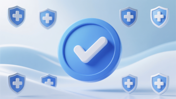 科技感十足的3D玻璃风盾牌,融合轻拟物设计,清透质感中展现未来医疗防护概念,环绕胶囊与病毒元素,象征健康守护。