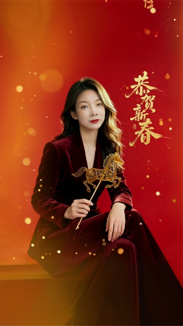 国潮风旗袍少女,描边马影映衬,刺绣质感与面料光泽交织,复古优雅中透出唯美中式美学。
