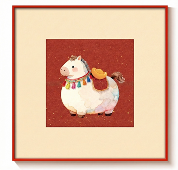 刺绣风马匹,融合工笔细腻与重拟物质感,喜庆红黄配色彰显国潮韵味,民族纹样点缀,尽显中式节日欢愉。