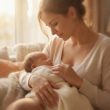 一位穿着白色吊带连衣裙的长发女子斜倚在柔软的米色沙发上,双手高高举起一个穿着白色连体衣的婴儿,婴儿悬空舒展着四肢,两人脸上洋溢着幸福灿烂的笑容。温暖柔和的自然光从窗外洒落,透过轻盈的白色纱帘形成朦胧的光影效果,照亮了整个室内空间。整体画面呈现出温馨、治愈的氛围,采用写实的摄影风格,色彩以柔和的米白色调为主,光影过渡自然,细节清晰,捕捉到母子间亲密互动的美好瞬间。