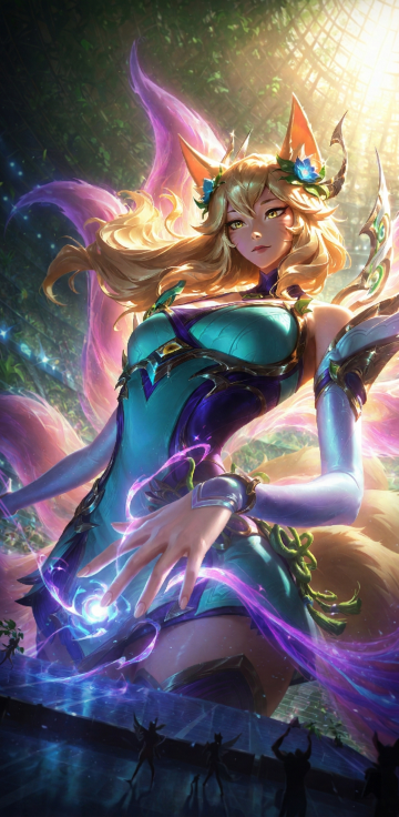 梦幻光影交织,唯美女神立于虚拟森林,动漫风插画融合粒子特效与油画质感,优雅姿态尽显神秘魅力。