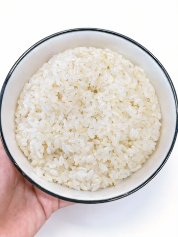 高清写实风格的大米产品展示图,主体为一个装满饱满长粒白米的浅棕色木质碗,米粒晶莹剔透,表面光滑带有自然光泽,碗的木纹清晰可见且质感温暖。碗的左侧放置两束金黄饱满的麦穗,麦芒细长分明,呈现出自然的弯曲形态。碗的右下方有一个小一号的木质勺子,勺子里盛有部分大米,勺口处散落出少量米粒在白色背景上。整体色彩以白色(大米)、浅棕色(木碗、木勺)和金黄色(麦穗)为主,色彩和谐自然。光线从左上方柔和照射,在碗和勺子上形成轻微的高光和自然的阴影,增强立体感和真实质感。构图采用中心对称布局,主体突出,背景为纯白色,简洁干净,无任何文字、LOGO或多余元素,整体氛围清新、自然、纯净,专注于展示大米的优质品质和天然属性。