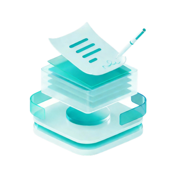 科技感十足的3D文档图标,采用轻拟物与玻璃风设计,清透蓝调呈现商务质感,体积感突出,简约现代。