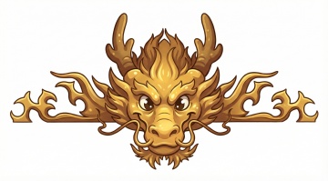 中式感插画风,金色龙首与火焰结合,超级符号设计,彰显力量与祥瑞。