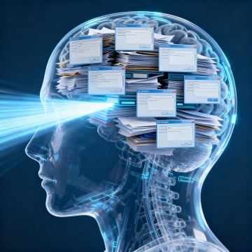 深蓝色背景上,以电路板纹理为基础,中央矗立着巨大的、立体发光的蓝色"AI"字母,字母内部有精细的电路纹路,周围环绕着流动的蓝色光效和闪烁的星点粒子,整体呈现出赛博朋克风格的科技感与未来感,具有强烈的视觉冲击力和深度感,营造出神秘而先进的氛围。