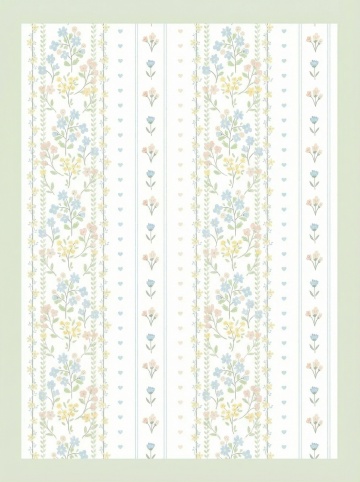 清新柔美的插画风花卉条纹,融合手账与水彩质感,点缀心形元素,营造甜美舒适的面料氛围。