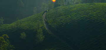 写实摄影风格,清晨薄雾笼罩的层层叠叠绿色茶园,远景为云雾缭绕的山峦,近景是两位戴着传统斗笠的采茶人,一位穿蓝色上衣、一位着浅色传统服饰,手持竹编茶篓和圆形竹匾,正在修剪整齐的茶树行间采茶,整体色调以翠绿、青蓝为主,光线柔和呈漫射状,营造出宁静悠远、自然清新的氛围,展现传统茶文化与田园风光的和谐之美。