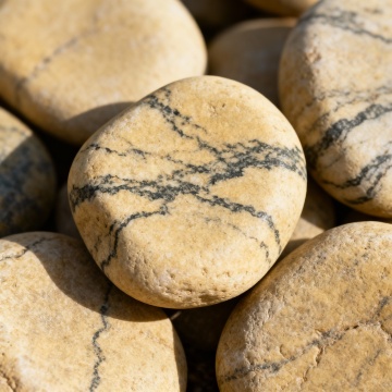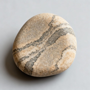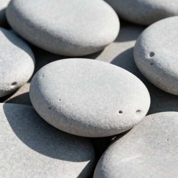 一组写实风格的石头与植物组合插画,石头表面有清晰的纹理和自然的风化痕迹,呈现出灰、白、浅棕等自然岩石色调,部分石头上覆盖着青苔和小型绿色植物,叶片有细致的脉络和光影变化,整体画面具有真实的质感和立体感,光照均匀柔和,色彩饱和度适中,营造出自然、质朴的氛围。