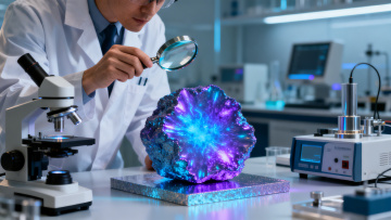 一个干净规整的现代化实验室场景,采用写实风格,以蓝白色调为主,光线明亮柔和,具有清晰的光影层次和细腻的质感表现。画面中可见身着白色防护服的研究人员在先进的白色和蓝色精密仪器设备旁工作,背景是带有规则几何图案的白色墙面。构图采用三分法,空间感强,整体氛围专业、严谨、科技感十足,适合作为背景使用。