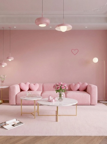 温暖柔和的奶油风客厅,米白色布艺沙发搭配多个浅色抱枕,沙发前铺有浅米色地毯,木质地板自然舒适。沙发背景墙为米黄色,墙上挂着一幅带有棕色相框的风景画,画中是柔和的海景。沙发上方的置物架上摆放着一盆绿植、一个几何纹路陶罐、一个复古黄铜座钟和一盏黑色金属台灯,置物架左侧矮台上有一个粉色陶瓷花瓶,旁边的小桌上放着几本翻开的杂志。整体采用低饱和度的暖色调,光线柔和,通过侧光营造出温馨静谧的氛围,光影层次丰富,具有简约而不失格调的日式侘寂风美感,空间布局通透,物品摆放错落有致,充满生活气息。