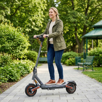 现代感与科技感融合的电动自行车,采用双色设计风与重拟物风格,金属质感强烈,实景自然背景衬托工业美学,展现未来出行新体验。