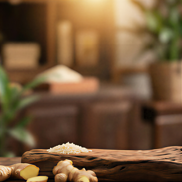 高清摄影风格,新鲜生姜特写,有精华油从上边滴落在堆叠的完整生姜块与切片,生姜表皮呈自然浅棕色带纹理,切面为明亮的淡黄色,质地细腻,3-4片姜片散落在生姜块前方,后侧有2片翠绿的生姜叶,叶脉清晰,整体光线明亮柔和,高对比度,突出生姜的新鲜质感和立体感,纯深色背景,无阴影,主体清晰突出,色彩真实还原,细节丰富。