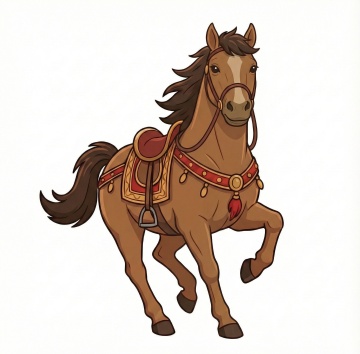 插画风与厚涂技法结合,呈现动漫风格的骏马形象,线条流畅,色彩饱满,突出体积感与优雅气质,唯美感十足,适合作为节日贺图或艺术收藏。