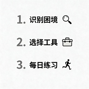 卡通感扁平风插画,手账式拼贴布局,简约主义色彩搭配,展现学习模式切换流程,突出策略型学习者张弛有道的高效路径。