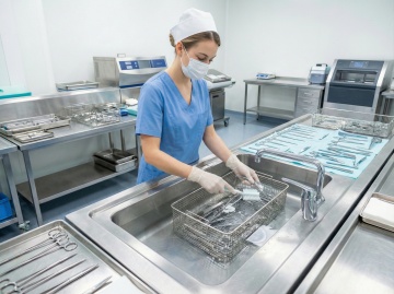 极简主义构图,全景视角下的未来生物实验室,纯净的白色与冰川蓝构成的无菌空间,墙面采用无缝纳米陶瓷板拼接,地面是反光率达95%的超白玻璃材质,顶部悬浮着呈几何阵列排列的环形LED光源,光线均匀地洒落在所有表面。左侧是模块化悬挂式试剂架,透明亚克力容器中装着梯度蓝色的生物试剂,下方嵌入式实验台配备隐藏式智能控制面板。中央区域放置着一台六边形结构的量子分析仪器,金属外壳呈现细腻的哑光钛白色。右侧墙面上的生物安全柜采用隐形门设计,与墙面融为一体。整个空间无任何视觉噪音,连空气都仿佛凝固在绝对静止中,只有试剂瓶上的分子结构标签在微光下隐约可见,完美平衡了科技冷感与空间美学,为内容展示提供极致洁净的背景画布。