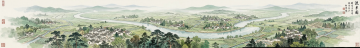 清新治愈的田园插画,融合水彩与厚涂技法,柔和梦幻的色彩渲染出春日乡野的宁静与生机,远山如黛,村落点缀其间,宛如印象画派笔下的诗意画卷。