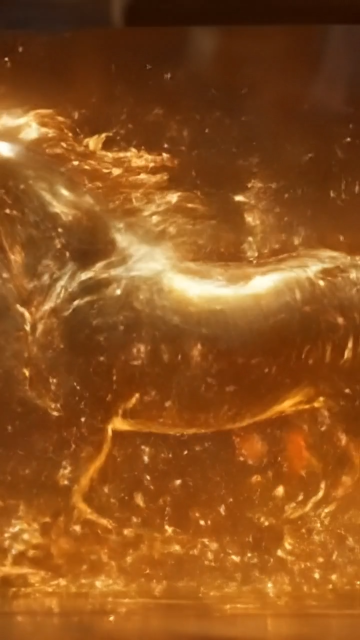 鎏金粒子勾勒骏马轮廓,描边风线条灵动飘逸,红金交织尽显奢华与梦幻,唯美优雅中透出节日祥瑞之气。