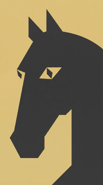 现代感剪影风马头,几何抽象造型,双色对比强烈,扁平简约设计,印刷质感十足,尽显力量与优雅。