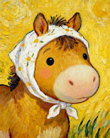 软3D风小马,粘土质感搭配紫色花饰与编织背包,萌趣可爱,清新梦幻,仿佛置身童话春日。