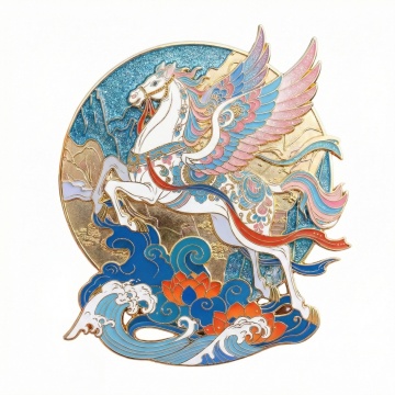 国潮风骏马,融合工笔与描边技法,鎏金线条勾勒神秘纹饰,暗红与金属色交织,展现古典神圣感,浮雕质感尽显复古气韵。
