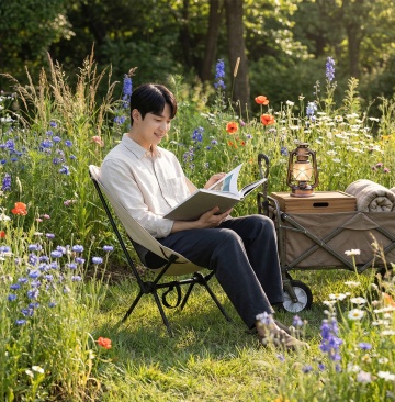 画面中是一位身着米色宽松针织毛衣的年轻男性,他坐在沙发上抱着抱枕,伸手向镜头,柔和的暖光与漂浮的尘埃营造出治愈浪漫的氛围