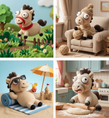 软3D粘土风小马,萌趣可爱,圆润造型搭配大眼微笑,节日氛围十足,适合儿童节或生肖主题设计。