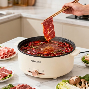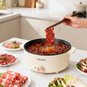 现代感与科技感交融的厨房场景,金属风电饭煲置于大理石台面,搭配清新果蔬与轻拟物设计,营造简约主义下的清爽舒适氛围。