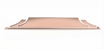 具有细腻拉丝纹理的玫瑰金金属背景,整体呈现柔和的粉金色调,中央有一道明亮的垂直高光带,光线从顶部照射下来形成渐变效果,边缘略微暗化,金属质感强烈,表面光滑且带有细微的平行拉丝纹路,不同区域的纹理密度略有变化,营造出丰富的层次感和精致的工业设计美感。
