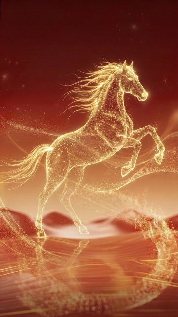 光影交织的描边风骏马,鎏金线条勾勒出梦幻与优雅,霓虹光晕流动于虚拟自然之中,尽显科技感与酷炫之美。