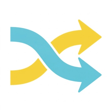 一个靛蓝色的卡通风格箭头图标,箭头朝向左下方,边缘有薄荷绿描边,箭头内部有一条粉紫色高光线条和一个柠檬黄圆点,整体设计简洁、扁平、可爱,具有现代感,适合作为指示图标使用,背景为纯白色。
