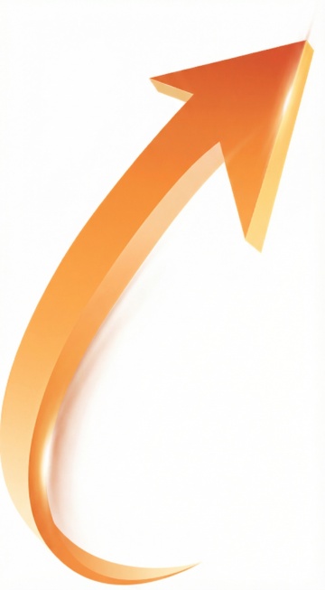 一个卡通风格的紫色箭头图标,箭头整体呈向左上方弯曲的形状,边缘有一圈柠檬黄描边,箭头内部为渐变的薰衣草紫与深茄紫,箭头头部右侧有一个荧光粉的高光线条和一个星形光斑,整体设计简洁、扁平化,色彩鲜明,具有梦幻俏皮的视觉效果,背景为纯白色。