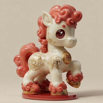软3D风国潮小马,融合中式纹样与鎏金细节,萌趣可爱,喜庆十足,尽显新年吉祥韵味。