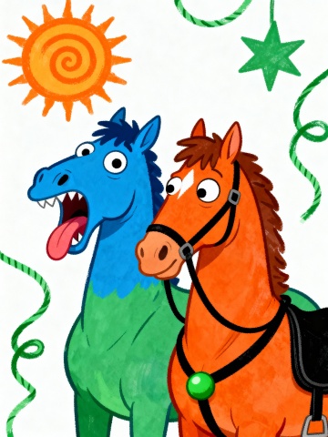 灵魂画手,简笔手绘线稿,绘本简约,绿色色线勾勒,有食欲,抽象,艺术,高级,大写意,极简风格,几只卡通可爱小马,矢量弥散,完美线条,粉色为主色调,磨砂肌理,朦胧感,非写实,色彩饱满,笔触细腻,手稿,大师杰作,白色背景