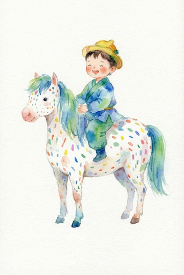水彩小马 水彩小孩