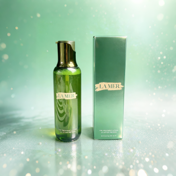清新玻璃瓶置于虚拟自然水景中,花影轻舞,尽显清爽与清透感。