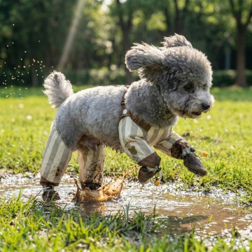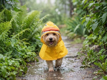 帮我生成给泰迪狗洗澡的场景图,狗狗表情愉快,头上有泡沫,狗狗坐在浴缸里身上的淋湿,旁边装有花洒套装,背景是浴室白色瓷砖,宜家风格
