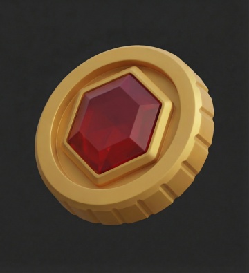 一个具有光滑金属质感的金色徽章,整体呈现为正六边形轮廓,边缘有精致的波浪形装饰,内部是一个圆形的光滑平面,带有从中心向边缘自然过渡的渐变光泽,高光部分位于顶部偏左位置,形成柔和的反光效果,阴影细节丰富,立体感强,背景为纯白色,整个设计简洁大气,具有高品质的3D渲染效果。