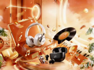 科技感十足的3D渲染耳机电镀金属风,简约主义设计融合现代感与未来感,重拟物风格呈现精致细节。