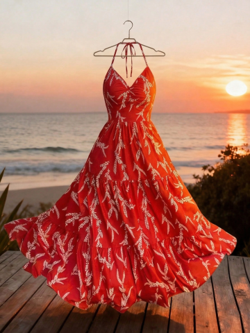 清新唯美的海边写真,橙色长裙随风飘扬,蕾丝点缀尽显优雅文艺,实景自然光打造浪漫时尚感,面料轻盈如诗。