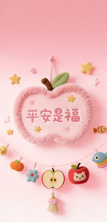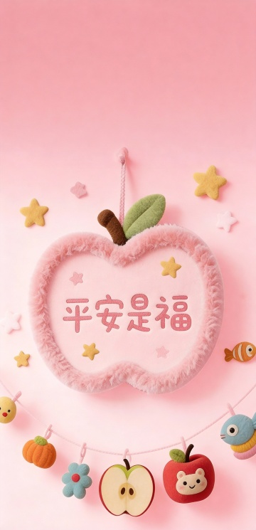 软3D风毛线编织字体,霓虹灯效“平安夜”温暖发光,搭配雪景、小雪人与苹果水晶球,营造梦幻可爱温馨的圣诞氛围。