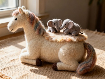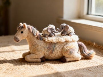 【马上有对象】毛发生长风与软3D结合,刺绣质感的羊毛毡小马驮着两只萌象,阳光洒落,温馨可爱,充满舒适感与轻拟物的童趣。