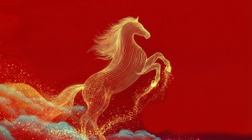 鎏金粒子勾勒骏马轮廓,描边风线条灵动飘逸,红金交织尽显奢华与梦幻,唯美优雅中透出节日祥瑞之气。