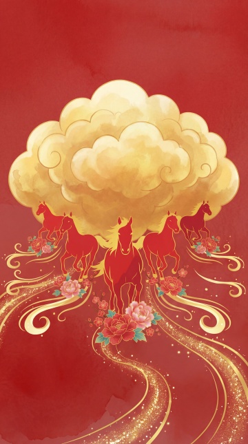 鎏金浮雕风骏马踏云,工笔描边勾勒古典韵味,红金配色尽显中式奢华与民族优雅,唯美复古中透出祥瑞之气。