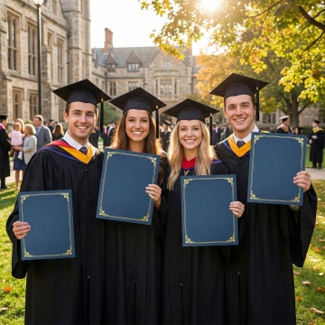 简约现代的教室,书包置于桌前,窗外秋景映衬,清新舒适,迎新季实景感设计。