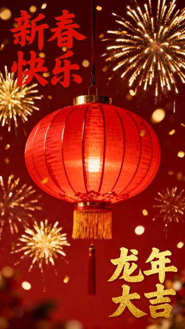 国潮风春字海报,融合水墨笔触与剪纸元素,红金配色彰显喜庆感,古典窗格、梅花与门神点缀,尽显中式传统韵味。