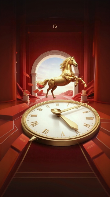 梦幻感与奢华感交织,3D浮雕玻璃风呈现中式云马意象,鎏金细节点缀,营造唯美优雅的节日氛围。