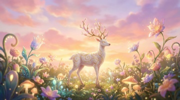 梦幻感与唯美感交织,插画风呈现虚拟自然中的鎏金鹿,水彩与油画质感融合,光影流动间尽显浪漫。