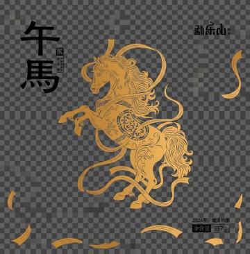 鎏金浮雕骏马腾云,3D重拟物国潮风,融合中式古典与民族纹样,尽显奢华喜庆的龙年新韵。