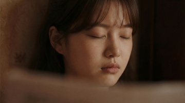 复古胶片风,东亚街巷静谧晨光中,女子倚书堆凝视旧照,金叶发夹与浮雕质感交织,拼贴式叙事诉说时光诗意。
